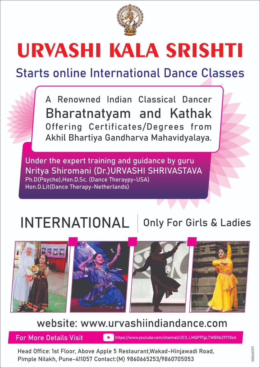 Students outside India can enroll for International online classes for Kathak and Bharatnatyam.